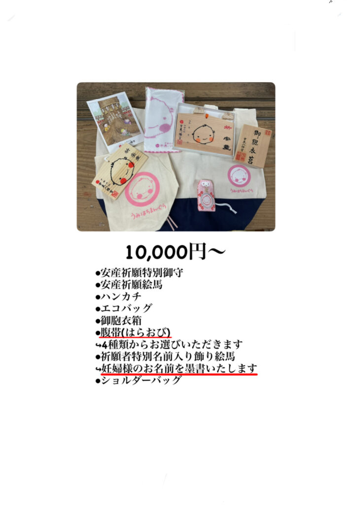 安産の御祈願の際に、オリジナル腹帯付をご希望の方には、祭典中に神主が墨書にて、御祈願を受けられる妊婦さまのお名前と祈願日付を揮毫致します。